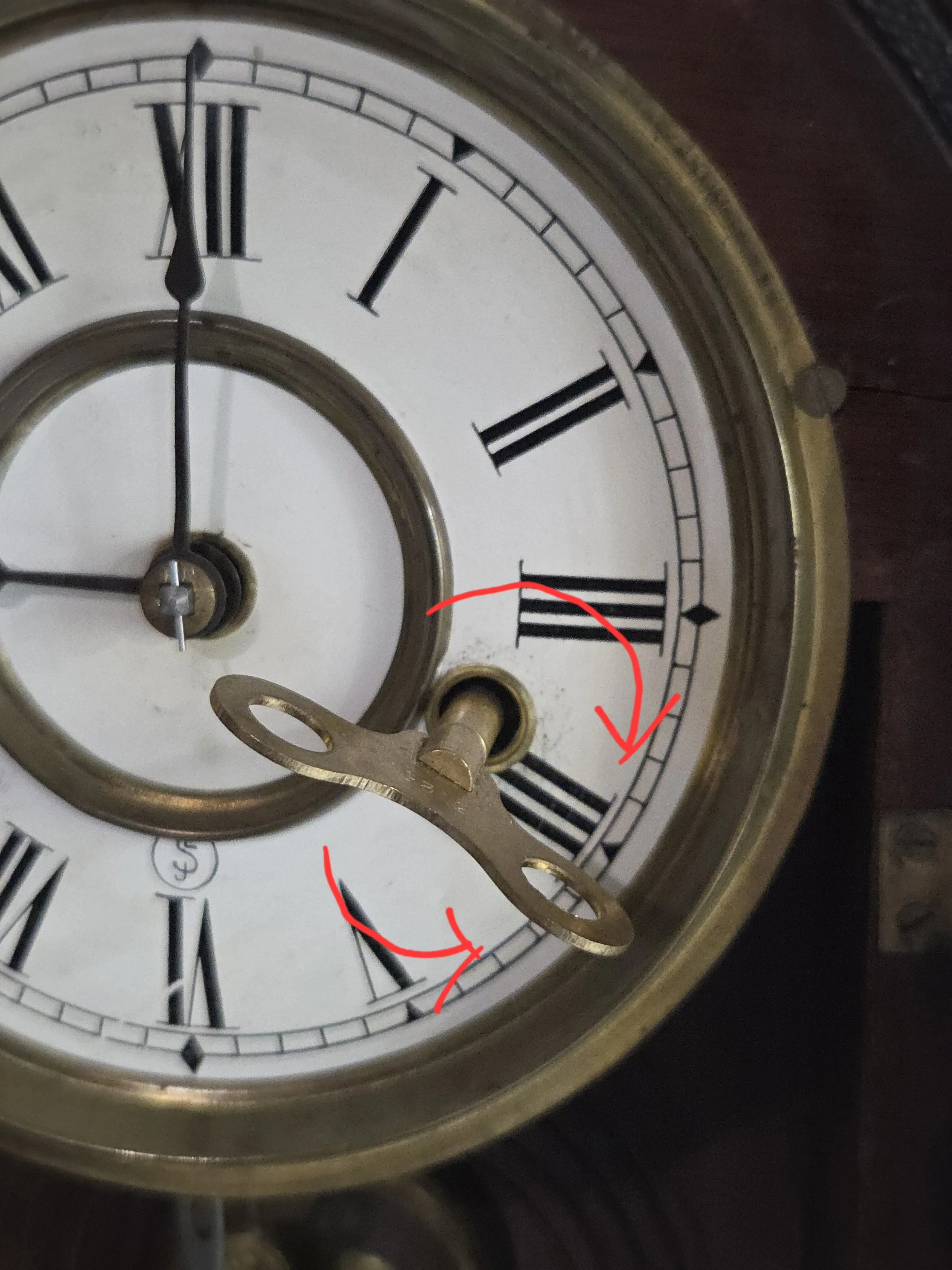 When winding a spring-driven clock, insert the correct clock key fully onto the winding arbor. The key should fit snugly without wobble. Using an incorrect key can round the arbor or crack the dial.